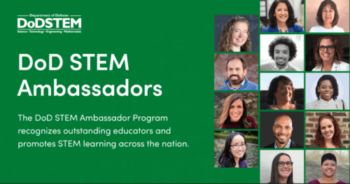 The program is open to K-16 STEM classroom educators, counselors, and/or STEM resource teachers. DoD STEM Ambassadors are carefully chosen by the Department of Defense STEM Education Consortium (DSEC) and DoD STEM based on their commitment to working with students who have been historically underrepresented in STEM and/or are military connected.