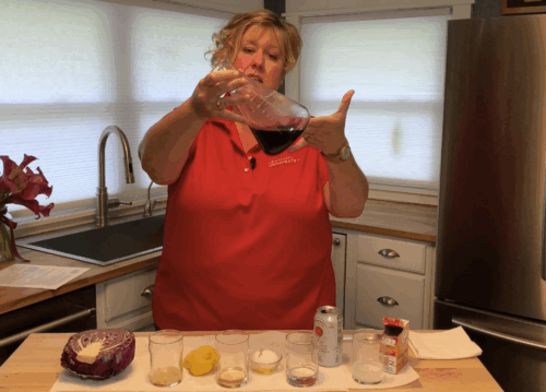 In this At-Home Science experiment, aired on WJLA’s “Outside the Classroom” on May 1, 2020, Learning Undefeated VP of Communications Janeé Pelletier demonstrates how red cabbage juice can be used as a pH indicator to determine whether certain liquids are an acid or a base. Red cabbage juice is usually a deep dark purple color but it turns red when added to an acid or green when added to a base. Red cabbage juices is the best known edible pH indicator in your kitchen but there are many safe fruits, vegetables and flowers that change color in response to acids and bases such as eggplant, beets, blueberries, cherries, onion, raspberry, grape juice, turmeric, and even tomatoes!